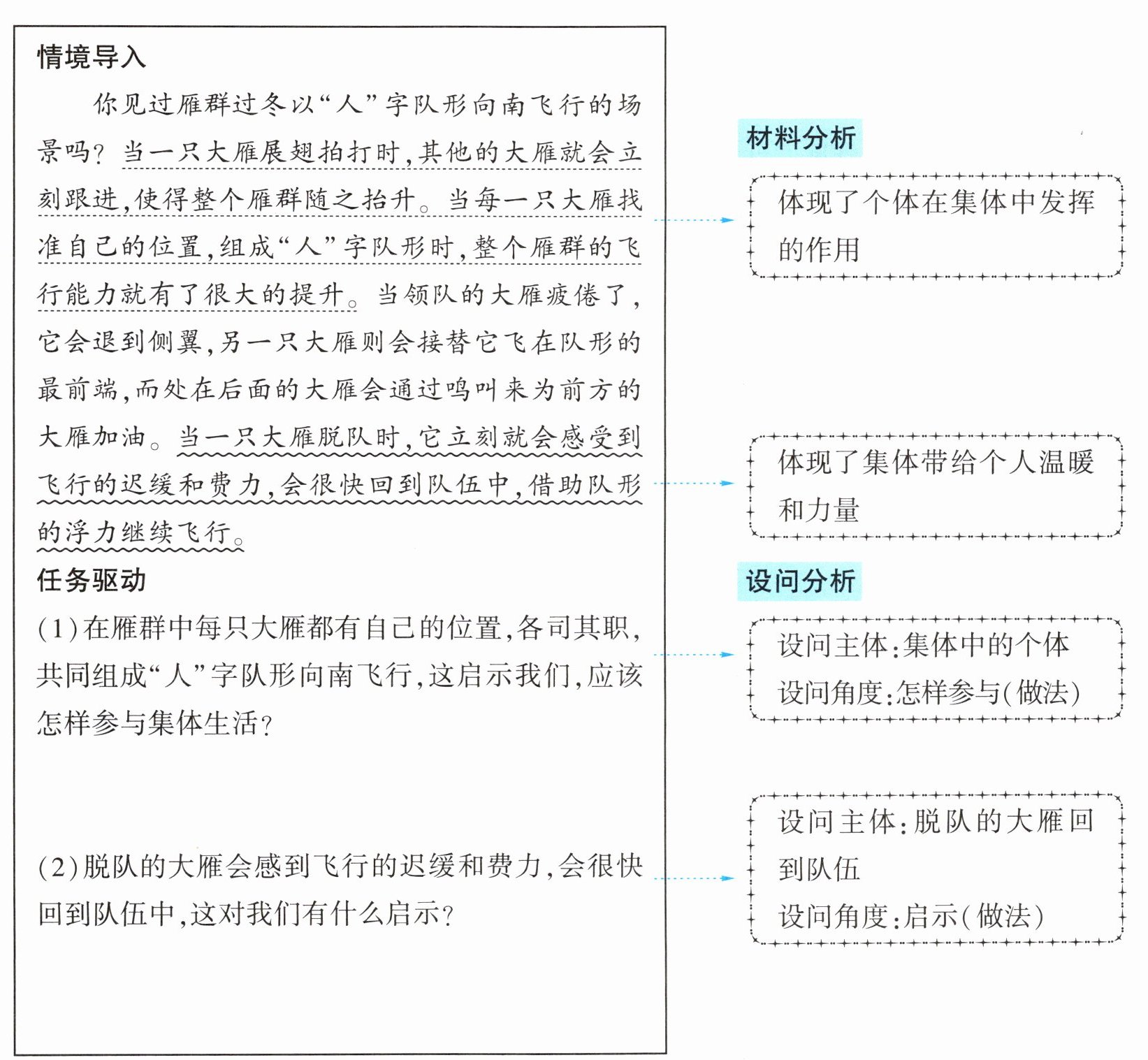 (2)脱队的大雁会感到飞行的迟缓和费力,会很快回到队伍中,这对我们有什么启示?