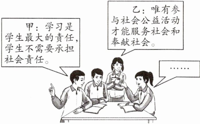 |甲:学习是学生最大的责任,学生不需要承担社会责任。|