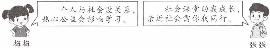 |个人与社会没关系,热心公益会影响学习。|社会课堂助我成长,亲近社会需你我同行。|