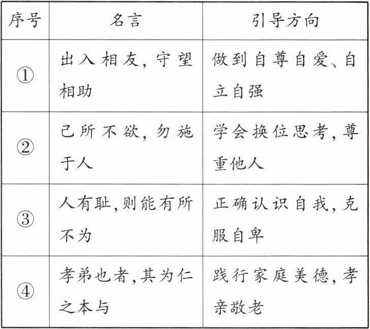 |②|己所不欲,勿施于人|学会换位思考,尊重他人|