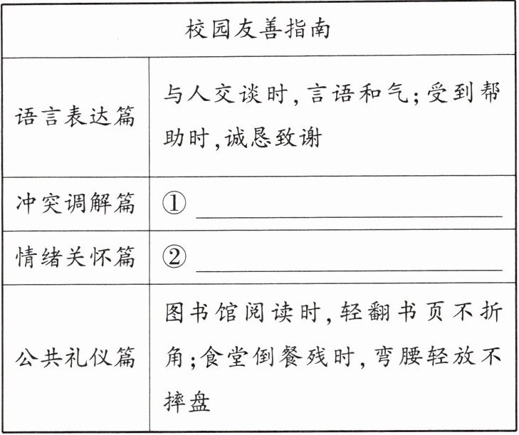 (3) 请将《校园友善指南》的空白处补充完整。