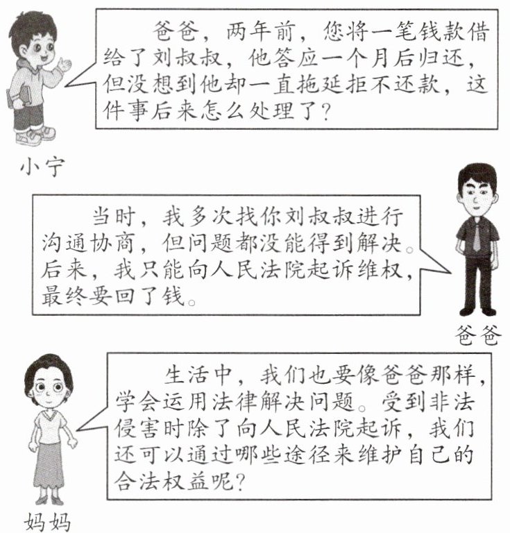 晚饭后,小宁一家聊起爸爸与好友之间经济纠纷的事情,以下是他们的对话片段。