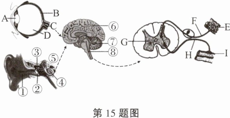 (1)在太空授课第二课中,王亚平老师将冰墩墩直着抛向了叶光富老师,叶老师看到冰墩墩向自己飞来时,冰墩墩反射的光线经过图中[ ]______和[ ]的折射作用,在[ ]______上形成物像,最终在大脑皮层的视觉中枢形成视觉。
