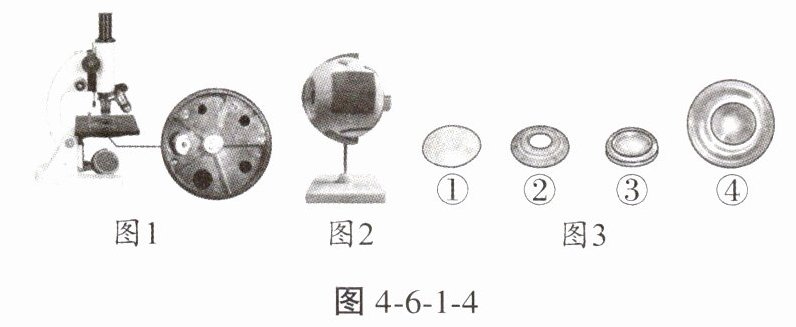 2. (1)【跨学科融合·物理】(2023·陕西中考)图4-6-1-4中,图1是显微镜及遮光器的放大图;图2是眼球结构模型;图3的①~④是从眼球模型中依次取出的结构。遮光器上的光圈可以控制显微镜的进光量,①~④中相当于遮光器的是(