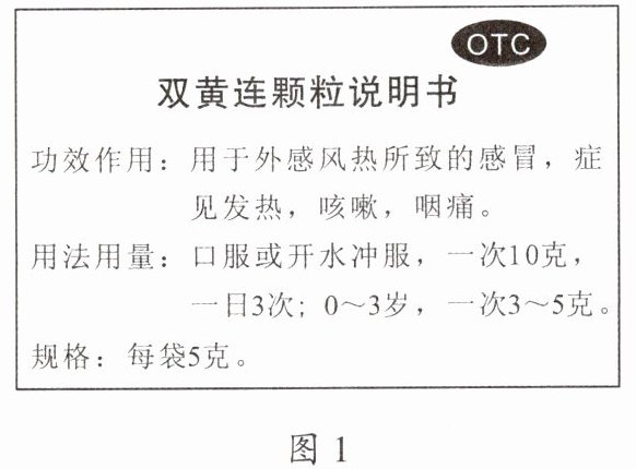 (1)当因感冒而嗓子疼痛时,据图 1 判断,购买双黄连颗粒需要医生的处方吗?