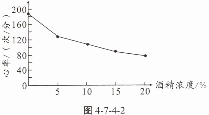 4. 【核心素养·探究实践】为探究酒精对动物的危害,某生物学兴趣小组开展了“探究不同浓度酒精对石壁鱼心率的影响”的实验。分析图4-7-4-2,下列相关说法错误的是(