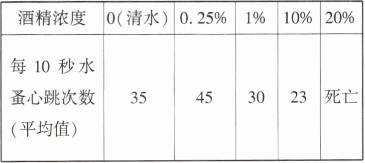 5. (2024·上海中考)某同学探究酒精对水蚤心率的影响,实验结果如表4-7-4-1。下列分析正确的是(