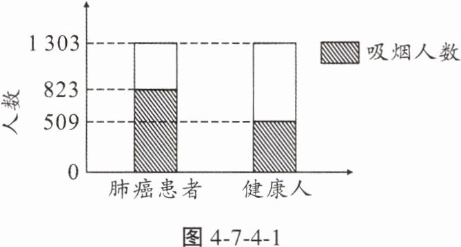 3. (2024·潍坊中考)某项对肺癌患者和健康人中吸烟人数的调查数据如图4-7-4-1所示,可以得出的合理结论是(