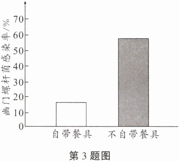 3. (2025·无锡中考)幽门螺杆菌是世界上感染率最高的细菌之一,可在人与人之间传播。为调查幽门螺杆菌的传播与人们日常饮食习惯之间的关系,生物学兴趣小组对某社区志愿者展开调查,调查结果如下图所示。下列说法错误的是 ( )