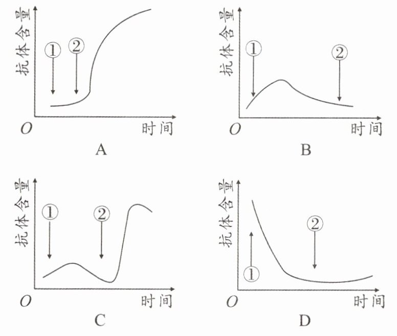 (2) 疫苗一般要接种 2~3 次,下列选项中能正确解释此现象的是______。(①表示首次注射疫苗,②表示再次注射疫苗)