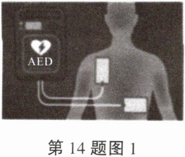 14. 【真实情境】日常生活中难免会遇到危急情况,为挽救心源性猝死患者的生命,可利用下图 1 所示的自动体外除颤器(英文简称 AED)进行急救,这是最有效救治猝死的办法。若公共场所具备 AED,则优先使用 AED,再进行心肺复苏。