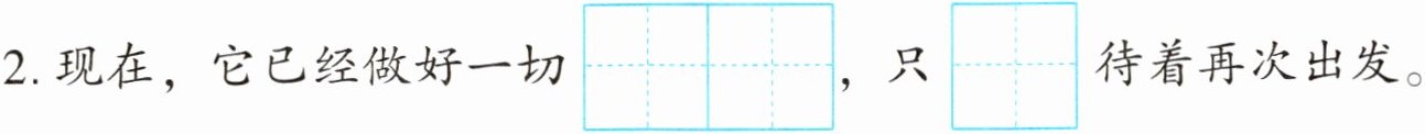 2. 现在,它已经做好一切$\begin{array}{|c|}\hline \mathrm{zh}ǔ\mathrm{n} \mathrm{b}è\mathrm{i} \\ \hline\end{array}\\ \hline $,只$\begin{array}{|c|}\hline \mathrm{d}ě\mathrm{n}\mathrm{g} \\ \hline\end{array}\\ \hline $待着再次出发。