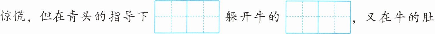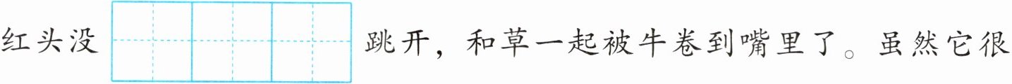 }$跳开,和草一起被牛卷到嘴里了。虽然它很惊慌,但在青头的指导下$\boxed{拼命