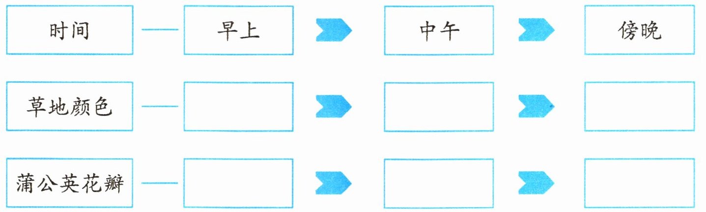 1. 阅读这则选段,认真观察草地的变化,完成下面的思维导图。