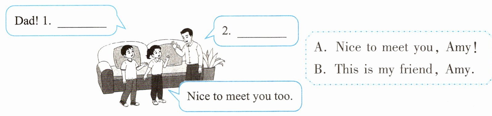 ( )1. —Hi, Zhang Peng. This is my dad. —____