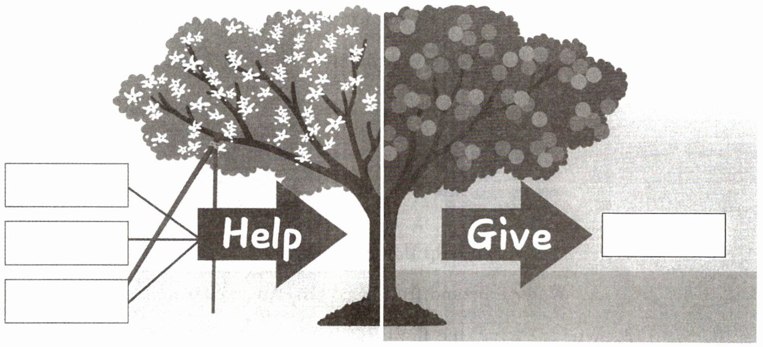 What do fruit trees need? Fruit trees need air, water and sun. They help fruit trees grow. What can fruit trees give us? They can give us fruit. We need fruit trees, and we can help them too.