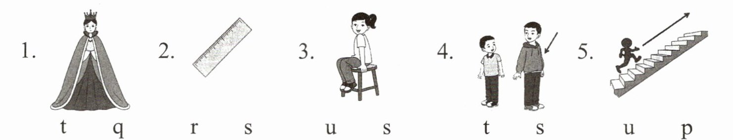 1. 圈出 q 2. 圈出 r 3. 圈出 s 4. 圈出 t 5. 圈出 u