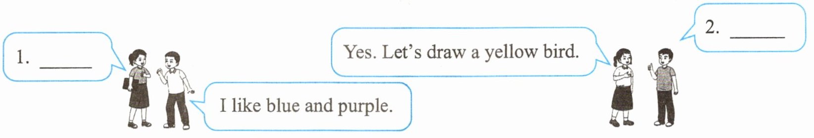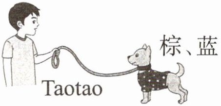 三、三位小朋友按自己的喜好给小狗穿上了不同颜色的衣服。根据图片,选择合适的答语,补全对话。