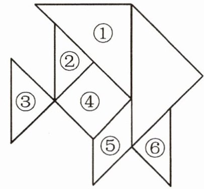 二、Lele用七巧板拼了一条小鱼。请根据提示,给小鱼涂上漂亮的颜色。