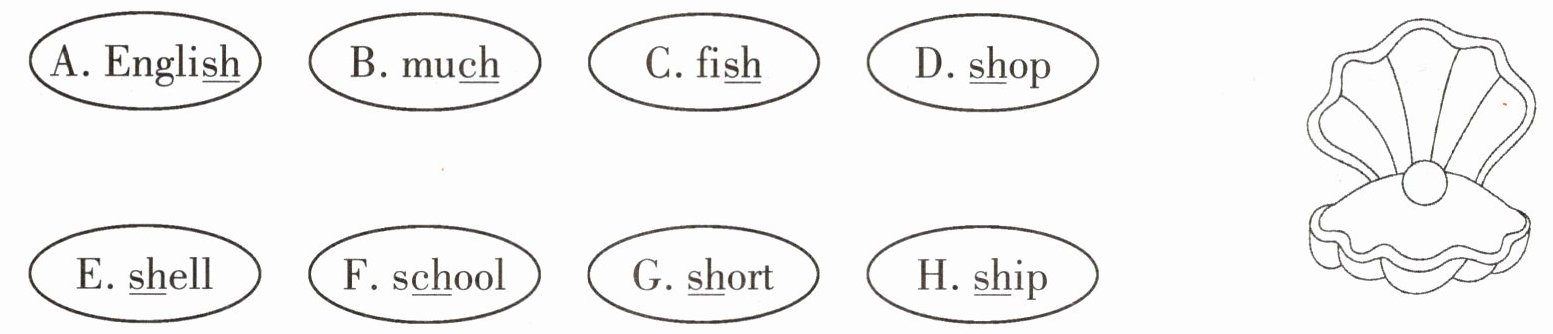 一、Chen Jie 正在玩“帮助珍珠回家”的游戏。请将含有“share”画线部分发音的单词选项填到贝壳里。