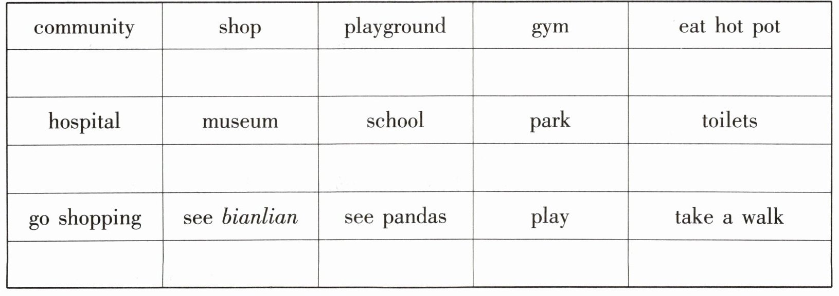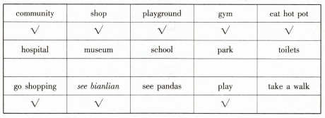 任务一:根据聊天内容,用“√”选出他们提到的地点和内容。