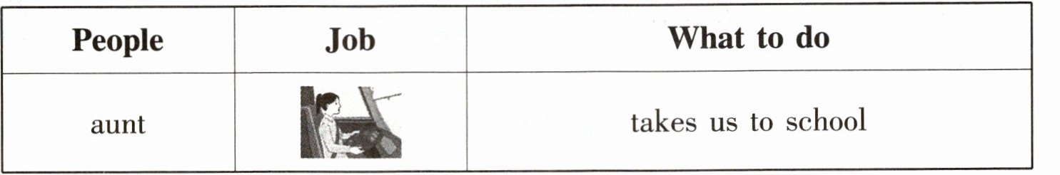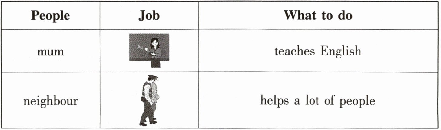 1. My neighbour is a police officer. He helps a lot of people. 2. My aunt is a school bus driver. She takes us to school.