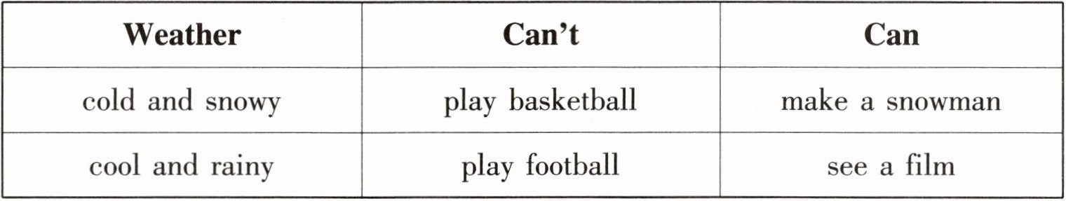 — It's cool and rainy today. — We can't play football. What can we do? — We can see a film.