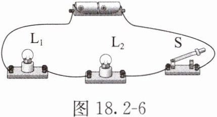 6. 图 18.2 - 6 中,小灯泡 $ L_{1} $、$ L_{2} $ 的额定电压相同。闭合开关后,发现 $ L_{1} $ 比 $ L_{2} $ 亮,下列分析正确的是(