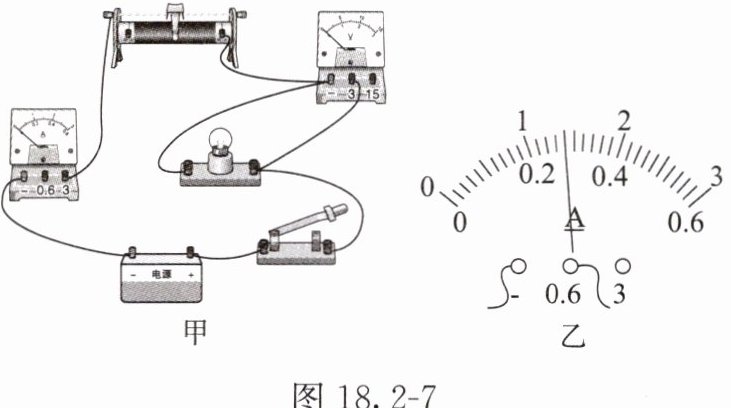 (1)图 18.2 - 7 甲是小明连接的电路,请指出其中的不妥之处:_______。