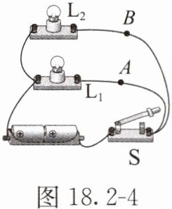 1. (2024·山东青岛)如图 18.2 - 4 所示电路,开关 $ S $ 闭合,小灯泡 $ L_{1} $ 和 $ L_{2} $ 均发光。它们的电阻不同,忽略温度对电阻的影响,下列说法不正确的是(