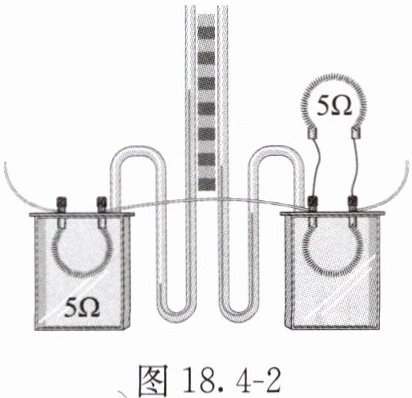 【典例 1】如图 18.4 - 2 所示,在探究电热与哪些因素有关的实验中,同学们猜想电热可能与电流大小、电阻大小以及通电时间长短有关。