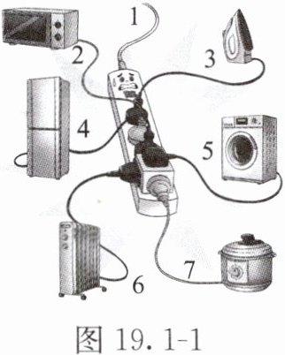 【典例1】如图19.1 - 1所示,将多个用电器插在同一个插排上同时使用,由于