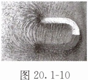 3. 将蹄形磁体放在一块有机玻璃板上,在玻璃板上撒一层细铁屑,轻敲玻璃板后出现如图 20.1 - 10 所示的现象。下列分析正确的是(