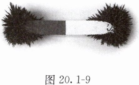 2. 明明实验时不小心将铝屑和铁屑混在了一起,为将二者分开,他将一根条形磁体放入混合屑中轻轻震荡,将磁体取出时发生如图 20.1 - 9 所示的现象。下列说法正确的是(
