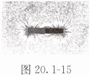5. 在水平桌面上放置一条形磁体,条形磁体上盖有一薄玻璃板,在玻璃板上均匀地撒一些细碎的铁屑,然后轻敲玻璃板,发现铁屑在玻璃板上有规律地排列,如图 20.1 - 15 所示。下列说法中正确的是(
