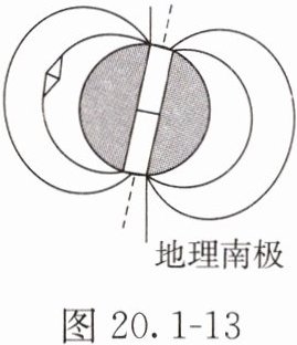 ,这个发现比西方早了 400 多年。请在图 20.1 - 13 中,标出地磁场的 S 极、磁感线方向并涂黑小磁针的 N 极。