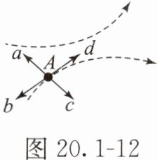 5. 如图 20.1 - 12 所示的两条曲线是两条磁感线,若将一枚小磁针放在 A 点,小磁针静止时 S 极将指向图中所示的(