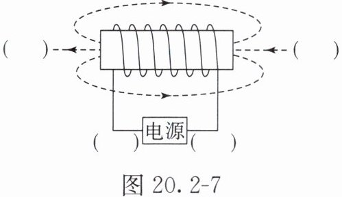 **【典例 3】** 在图 20.2 - 7 中,根据磁感线的方向,标出通电螺线管的 N、S 极和电源的“+”“-”极。