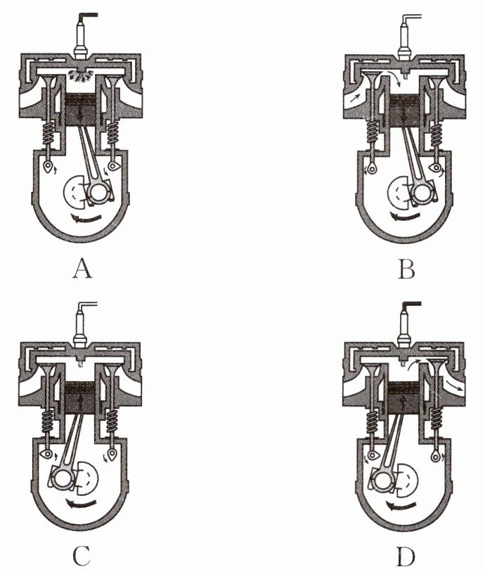 )A.汽油机气缸顶部有喷油嘴,柴油机气缸顶部有火花塞