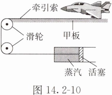 A.图14.2-10中气缸内的蒸汽体积膨胀,从而推动活塞使舰载机获得牵引力