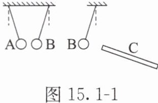 A、B是两个轻质泡沫小球,C是用丝绸摩擦过的玻璃棒,A、B、C三者之间相互作用时的场景如图15.1 - 1所示,由此可判断:小球A,小球B(均选填“一定带正电”“一定带负电”或“可能不带电”)。