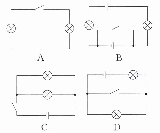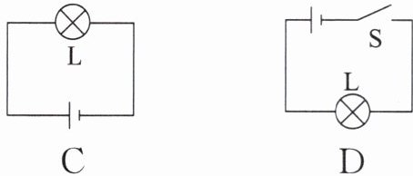 1. 如图15.2 - 19所示,将小灯泡连入电路中,与该实物电路对应的电路图是( )