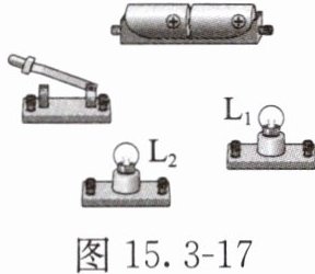2. 如图15.3-17所示,小明利用实验器材进行电路连接练习。现要使两个小灯泡串联、开关可以控制所有用电器,请你帮他正确连接电路。