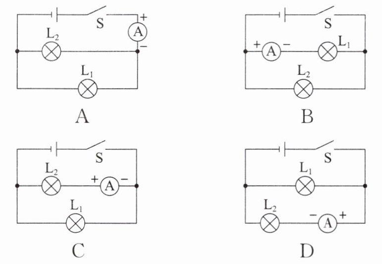 3. 电流表能直接测出通过小灯泡$L_2$电流的是 (