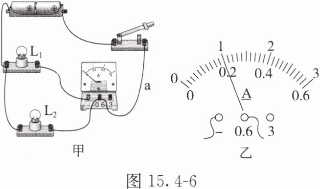 。(3) 小明想继续测量通过小灯泡$L_2$的电流,他将图15.4-6甲的导线$a$与电流表“$0.6$”接线柱相连的那一端改接到“$-$”接线柱上,这种做法______(选填“可行”或“不可行”),理由是________________。
