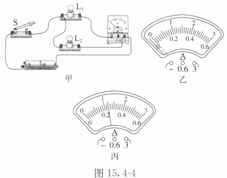 。(3) 聪聪纠正错误后再进行实验,电流表的示数如图15.4-4丙所示,则电流表测量的电流是