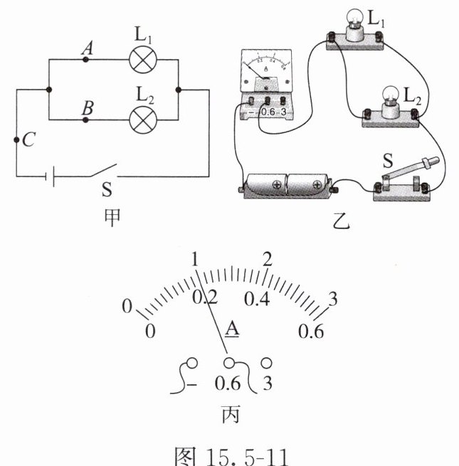 4. 用如图 15.5 - 11 甲所示的电路探究并联电路的电流规律。