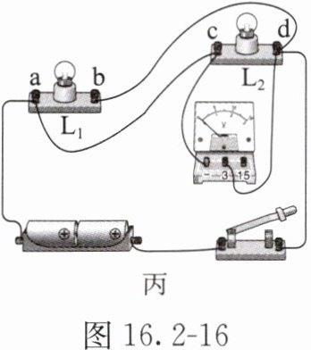 (5)明明将电压表并联接在图16.2 - 16丙所示电路中的a、b,c、d,a、d两端,测出一组数据后得出并联电路电压规律,聪聪说这样的结论不具有普遍性,接下来的操作是_______。