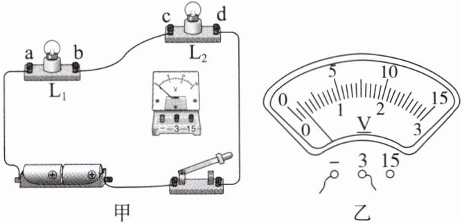 (1)题图甲中要测量L₁两端的电压,电压表应该并联在L₁两端,电流从电压表的正接线柱流入,负接线柱流出,电源电压由2节干电池组成,则电压表的测量范围选用0~3V即可,如答图16.2-3所示。