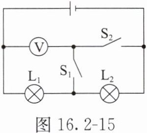 6. 如图16.2 - 15所示电路,电源电压不变,S₁闭合,S₂断开时,电压表的示数是3V;S₁断开,S₂闭合时,电压表的示数是4.5V,则L₁两端的电压为